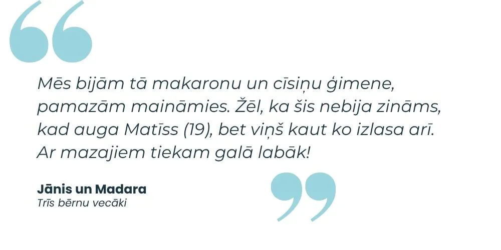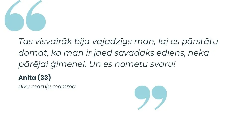 Neatradīsi stingrus plānus, kalorijas, gramus pie kuriem turēties. Tas viss nestrādā ģimenēs (un nestrādā vispār, bet tā ir citas reizes saruna).