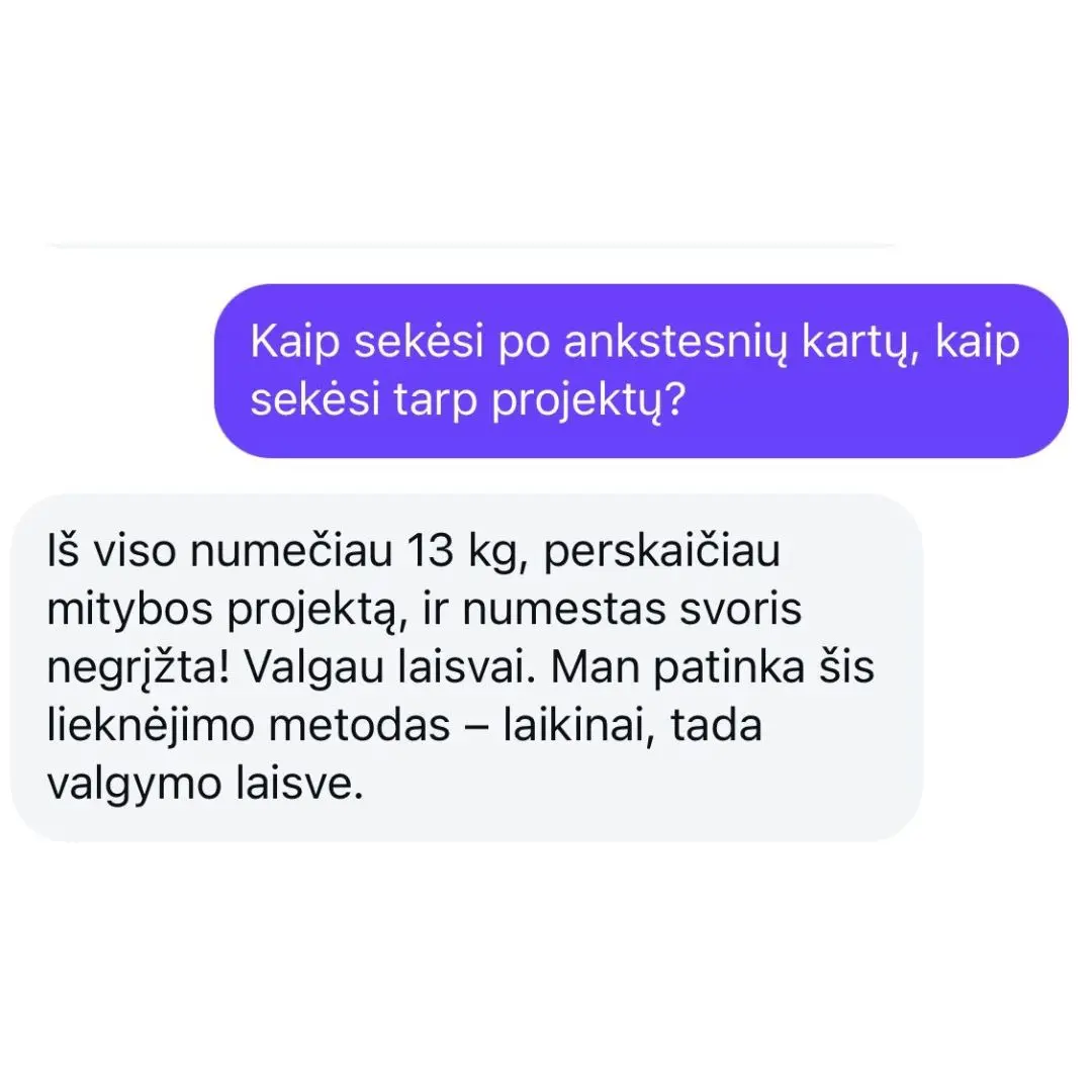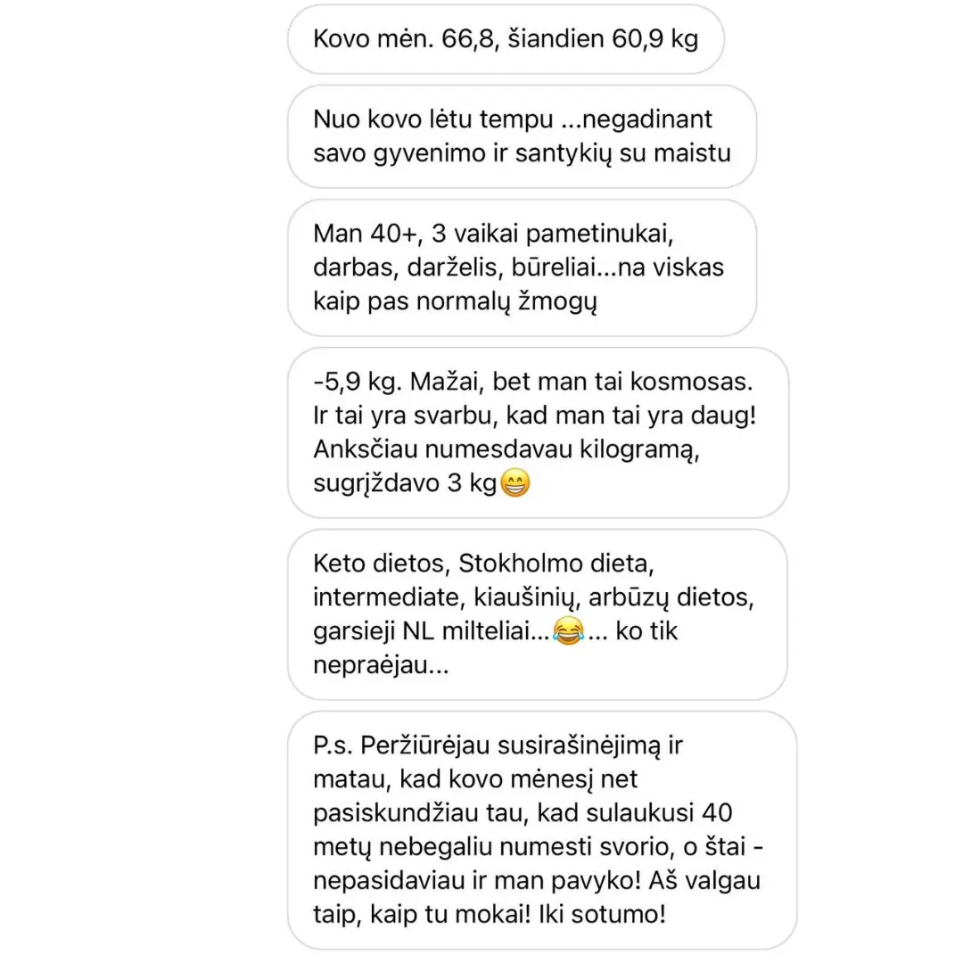 Todėl šiame projekte yra abu šie etapai: tu išmoksi viską apie svorį ir jį susitvarkysi, bei išmoksi valgyti kasdienybėje laisvai, be kovos su savimi