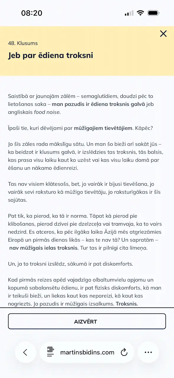 Jo ir divas pieejas kā var mācīt par uzturu. Viena ir "kā vajag" puse: sterila, perfekcioniska un atrauta no realitātes. Tā mēģina mainīt cilvēku, lai tas atbilstu plānam, un, ja nesanāk — "pats vainīgs". Otra ir mana - pielāgot uzturu cilvēkam. Saprast, ka ne dzīve, ne ēšana nav perfekta. Mans uzdevums ir atrast to vidusceļu, kur tiek apmierinātas gan tava ķermeņa vajadzības, gan tavas cilvēcīgās vēlmes.