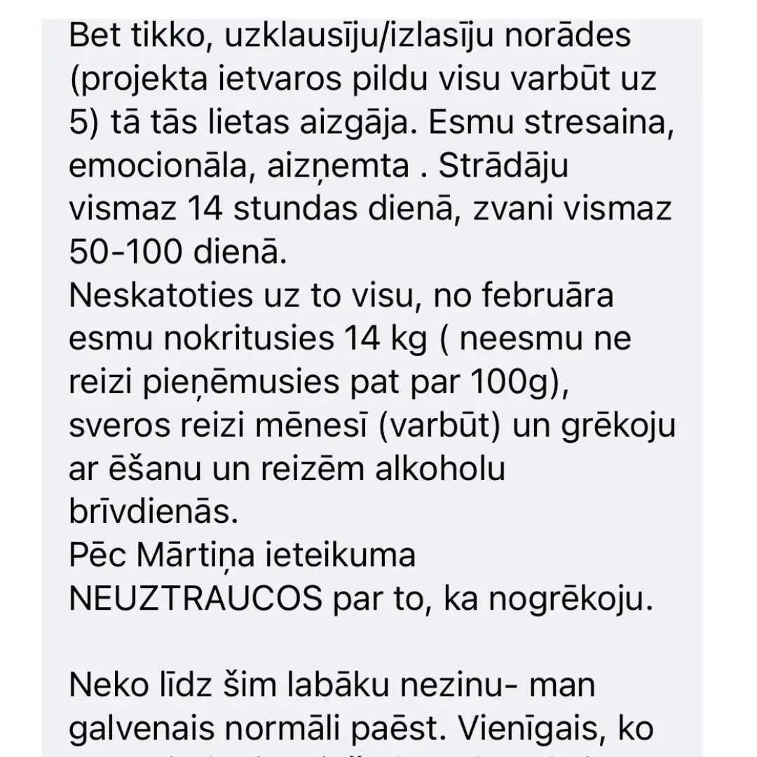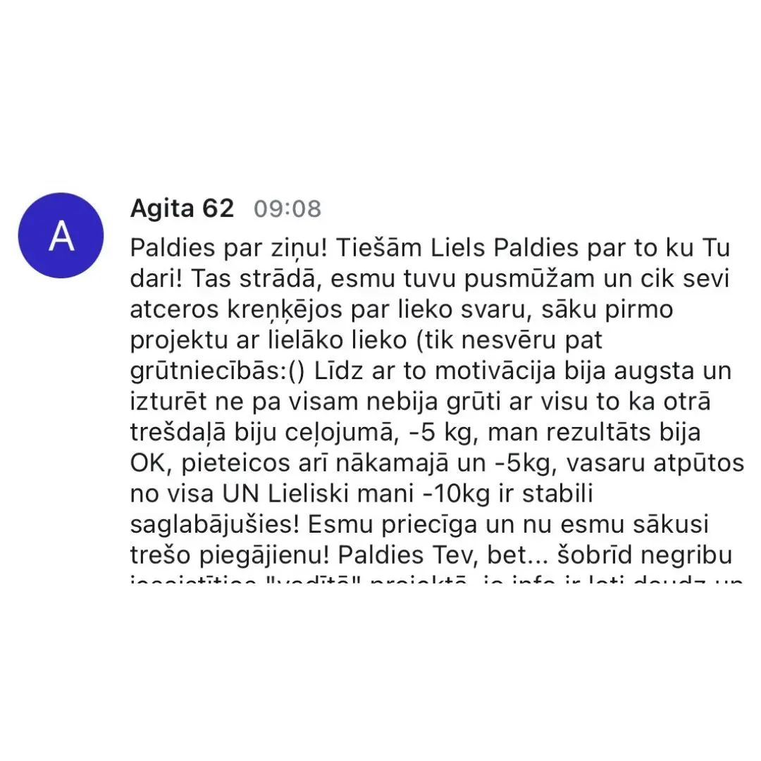 Tāpēc šajā projektā ir šie abi posmi un tu iemācīsies visu gan par svaru un to sakārtosi, gan iemācīsies ēst ikdienā brīvi, bez cīņas ar sevi