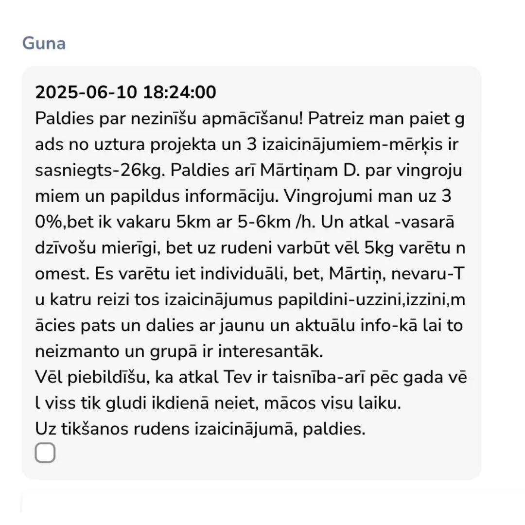 Esmu izveidojis vidi, kas ļauj justies brīvi, nebaidīties kļūdīties, saņemt atbalstu nevis pārmetumus vai šķībus skatienus. Īstas pāmaiņas notiek tikai drošā vidē!