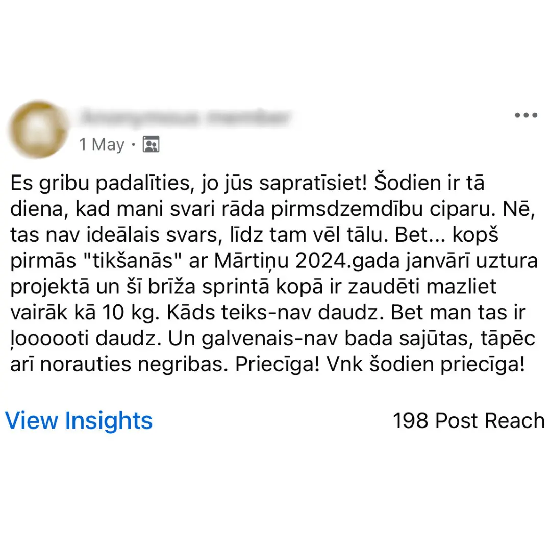 Prasmes, kas paliek arī pēc projekta beigām. Tu neiegūsi kārtējo fikso rezultātu, kas sabrūk pie pirmās iespējas. Tu iemācīsies saglabāt formu savā reālajā, neperfektajā dzīvē, lai tev nekad vairs nebūtu jāmeklē jauna diēta!